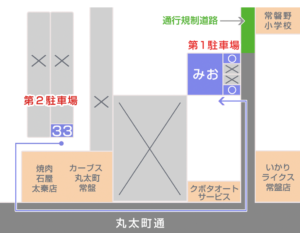 万が一、指定場所以外へ駐車され、事故・接触・トラブル・クレーム等が発生した場合は、当店では責任を負いかねます(自己責任)ので、あらかじめご了承ください。